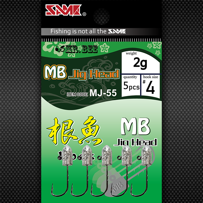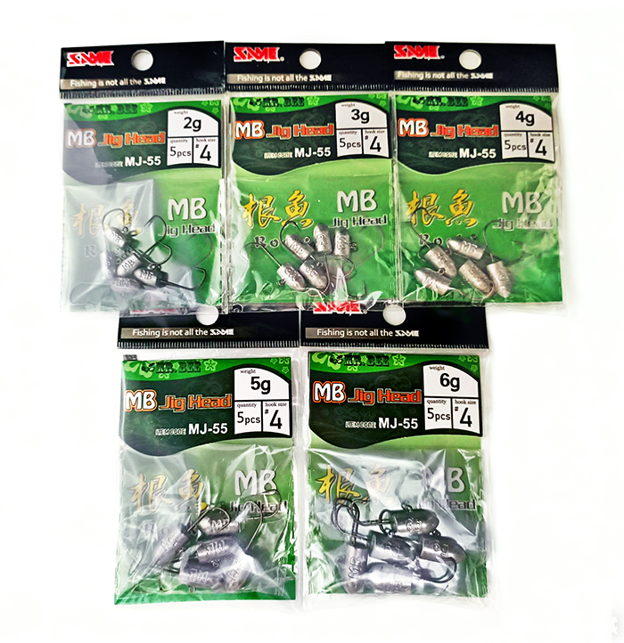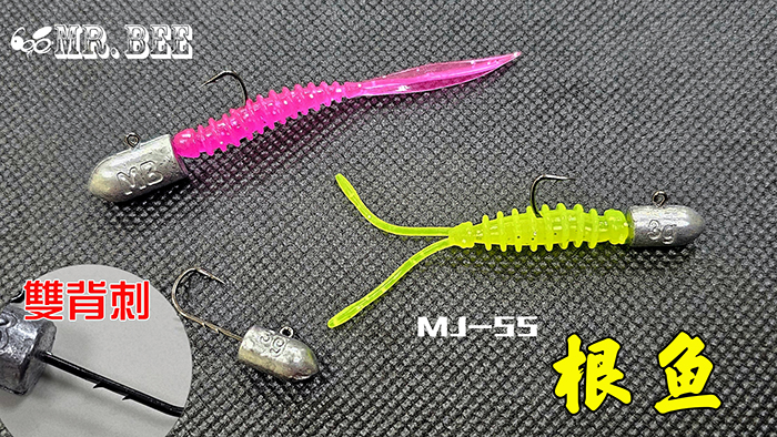 MJ-55根魚鉛頭鉤 ◇雙背刺魚鉤,讓軟餌不易脫落。 ◇特殊設計鉛頭,具備好操控與創造美妙泳型功能。 ◇The double barbed hook ensures soft lures stay securely in place. ◇Unique jig head design, with good control feature and nice swimming action.